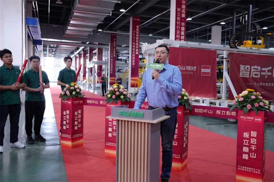 在消費升級的大浪潮下,市場對板材的品質、環(huán)保及個性化需求日益提升。溫康納生產(chǎn)線的引入,正是千山響應市場趨勢、賦能集團發(fā)展、共同為終端客戶創(chuàng)造價值的有力舉措。千山板材將攜手全國經(jīng)銷商,將這份“技術領先”優(yōu)勢,轉化為強勁的市場競爭力。 聚焦于生產(chǎn)制造環(huán)節(jié)的革新,邱總表示:德國溫康納生產(chǎn)線以高度自動化、精細化、智能化和穩(wěn)定性著稱。它的引入,將大幅提升效能、加碼品質,確保千山板材的出廠產(chǎn)品具備高端品質的一致性,這也是千山踐行“品質過硬”’承諾最堅實的保障。