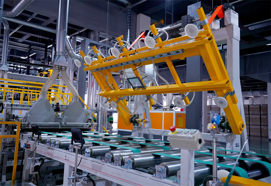 作為“壓貼領域的領導者”,溫康納在短周期壓貼領域處于世界領先地位,占據(jù)了國內高端市場。相比于傳統(tǒng)壓貼產(chǎn)線數(shù)分鐘的周期,溫康納產(chǎn)線的壓貼周期大幅壓縮,效率提升數(shù)倍以上,產(chǎn)能可達到4800張/20小時。 溫康納智能化產(chǎn)線實現(xiàn)全流程自動化無縫銜接,從自動上下料、自動進板裝置到壓機壓貼、清邊倒角、翻板檢驗等,每個環(huán)節(jié)都實時調控。更令人驚嘆的是紅外激光精準對紋系統(tǒng),將誤差嚴格控制在毫米級以內,使板材紋理對接的美觀度實現(xiàn)質的飛躍。 溫康納生產(chǎn)線保證了板材在最大壓貼范圍內材料之間的最小厚度差,能夠更靈活地使用基材,同時確保產(chǎn)品質量的穩(wěn)定性。溫康納的精密與進口鋼板“珠聯(lián)璧合”,將使千山板材潮流花色達到行業(yè)新高度,實現(xiàn)高顏、高質、高品體驗。 溫康納生產(chǎn)線的引進是千山智能制造戰(zhàn)略的重要組成部分。在消費升級和產(chǎn)業(yè)轉型的大背景下,千山并沒有選擇簡單擴大產(chǎn)能的道路,而是通過引進頂尖技術裝備,實現(xiàn)從“制造”到“智造”的跨越。
