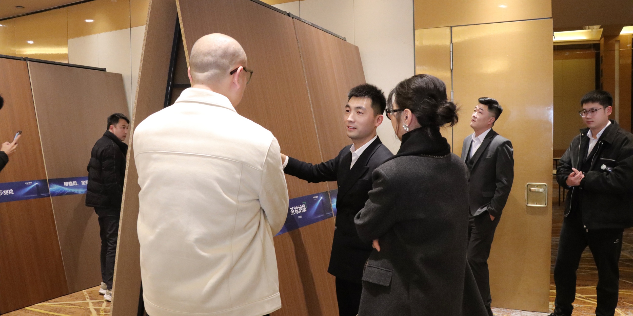 此外,大會特設(shè)“花色交流”開放展區(qū),將全新花色體系與樣冊實物鋪陳呈現(xiàn)。經(jīng)銷商伙伴不僅可近距離品鑒、觸探產(chǎn)品質(zhì)感,更可在自由交流中激發(fā)選品靈感、共享市場洞察。王松總亦深入其中,與一線伙伴共話花色趨勢與應(yīng)用場景。