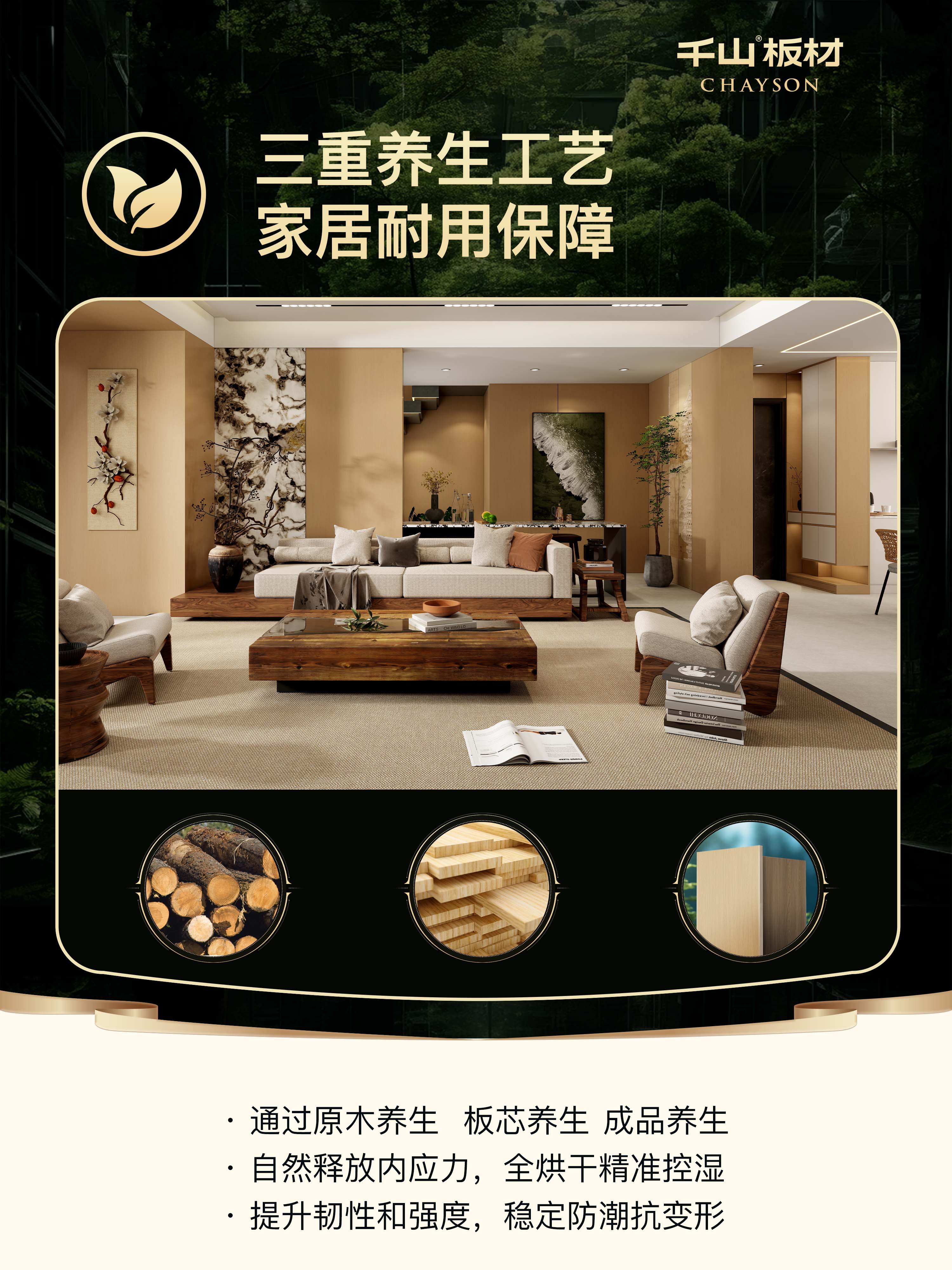 千山原木板質(zhì)地天然,綠色0醛0苯添加,環(huán)保達(dá)采暖HENF級(jí),融入凈醛、抗菌、抗病毒功能工藝,讓家不止于美觀,更是一方安心健康的守護(hù)。