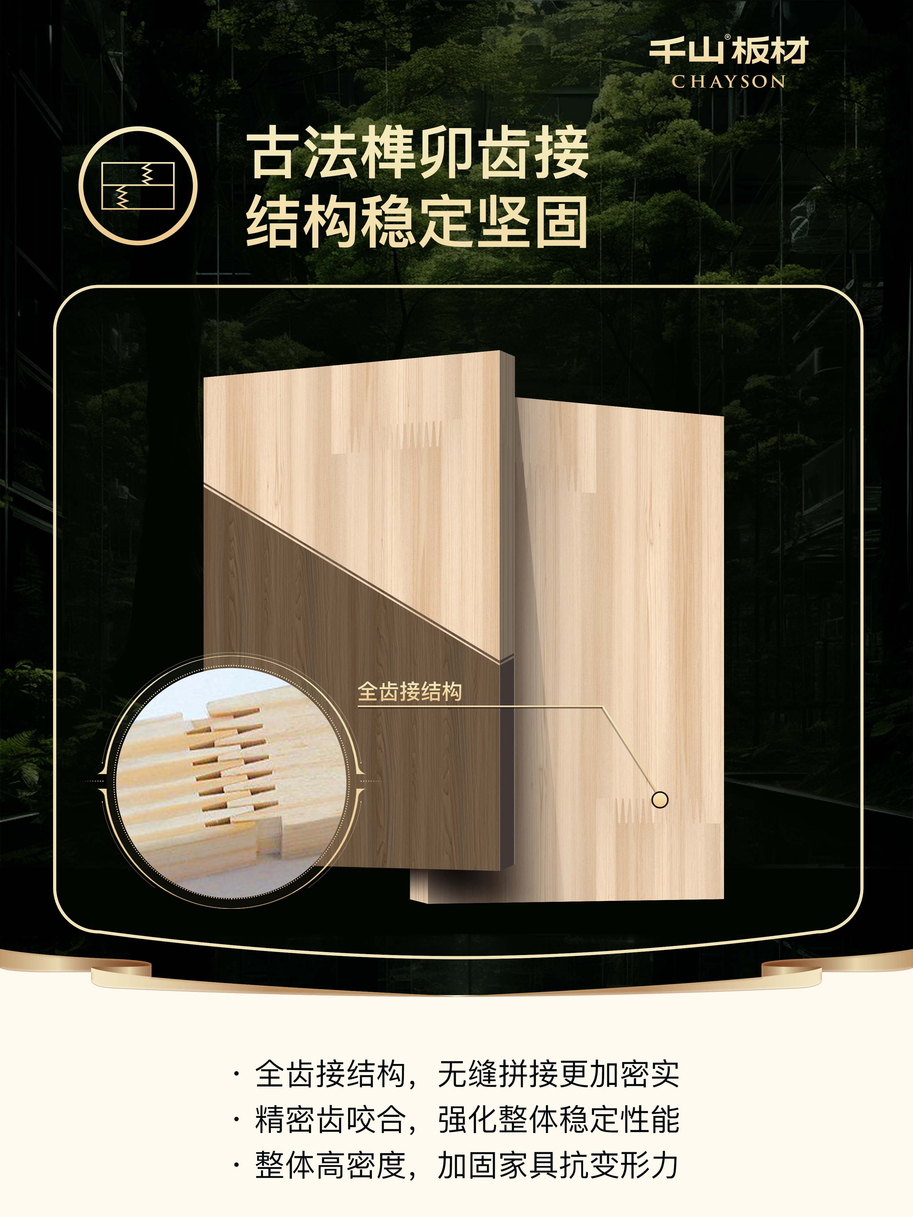 千山原木板采用全齒接工藝,通過(guò)精密咬合結(jié)構(gòu)強(qiáng)化整體穩(wěn)定性,既保留木材的自然屬性,又顯著優(yōu)化承重性能,握釘力更強(qiáng)。